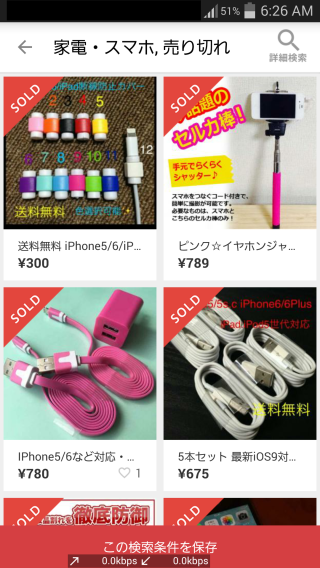 ④こんな風に売り切れだけの商品が表示されます。