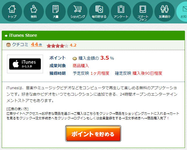 ポイントサイトによっては、還元率やお店が異なる事もありますがご自分のお買物に合わせて